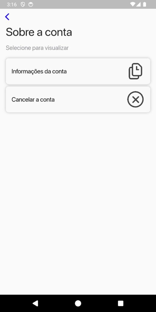 Na tela Sobre a Conta, selecione a opção Cancelar a Conta.