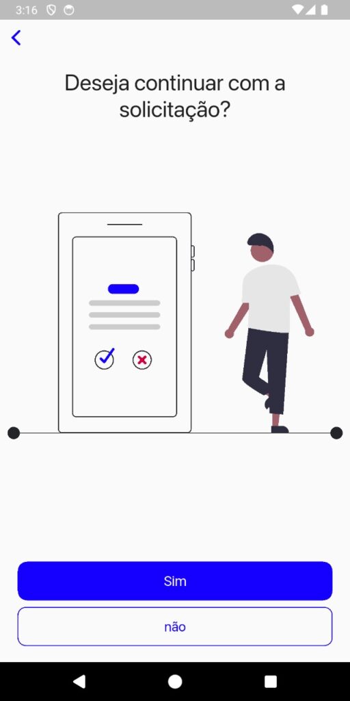 Aparecerá a mensagem “Deseja continuar com a solicitação?” Clique em Sim.